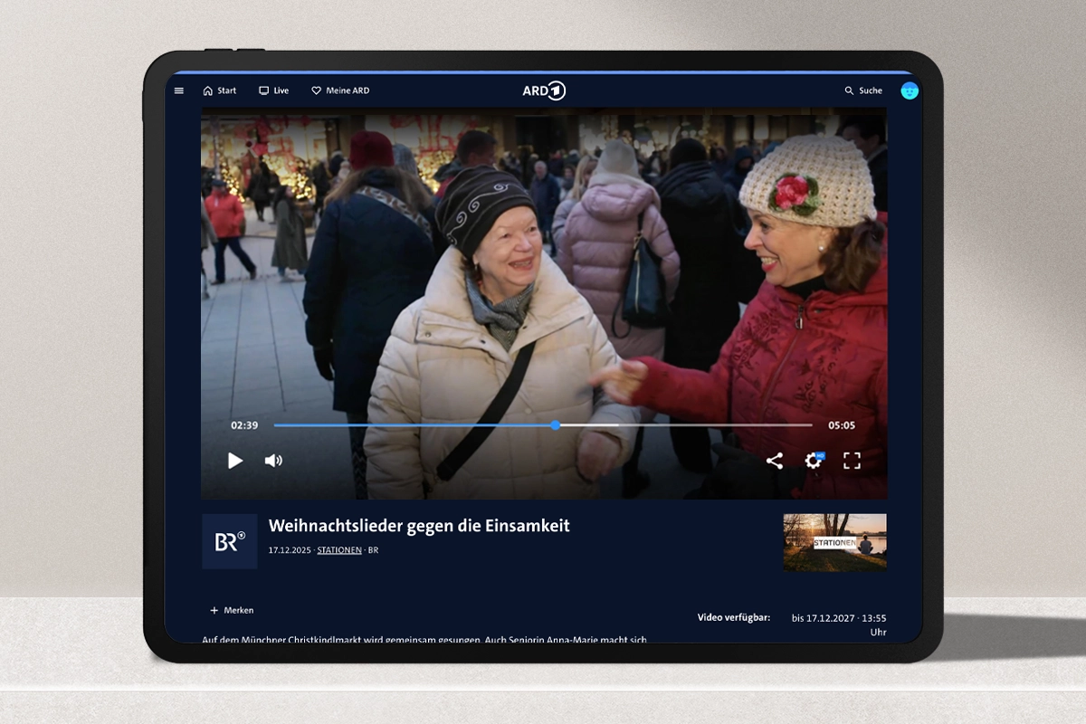 Der Bayerische Rundfunk hat eine »unserer« Seniorinnen zum Singen begleitet. Die Sendung können Sie in der ARD-Mediathek ansehen.
